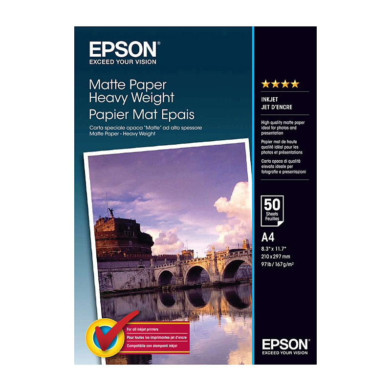 Epson A4 Matte Paper Heavy Weight - 50 Sheets (167gsm) C13S041256