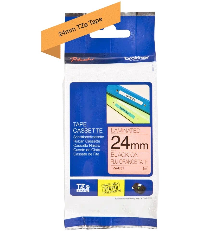 24MM BLACK ON FLUORO ORANGE TZE TAPE
